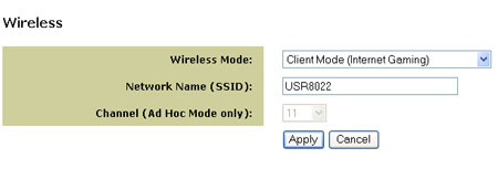 Or, you can also switch between modes by selecting the Wireless tab, selecting the appropriate mode from the Wireless Mode field, and selecting Apply.