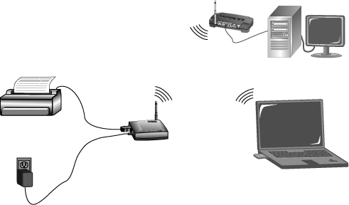 Connect the included power adapter to the power socket on the Wireless USB Print Server. Plug the power adapter into a standard power outlet.
