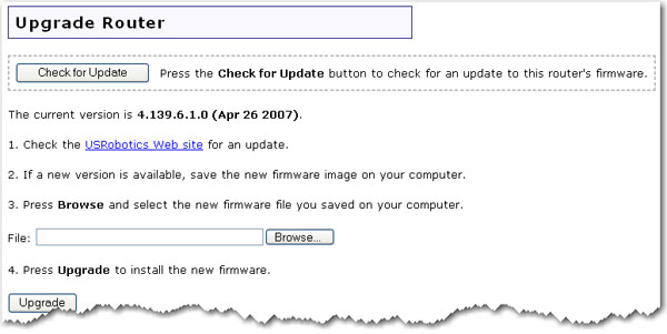 Click Check for Update to search for the latest firmware from www.usr.com and save the firmware file to your computer.