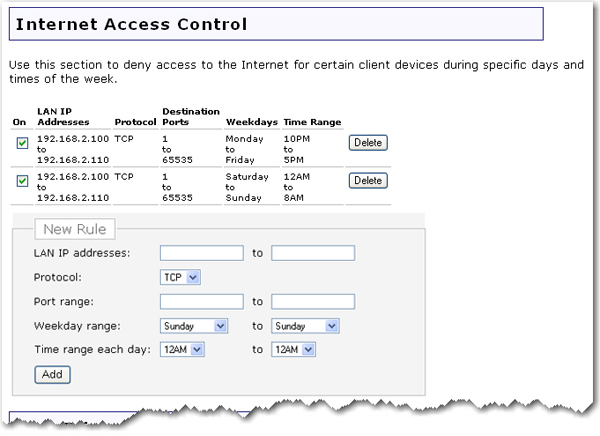 For detailed steps on configuring your own Internet Access Control rules, see the Parental Controls section on the Tutorials page.
