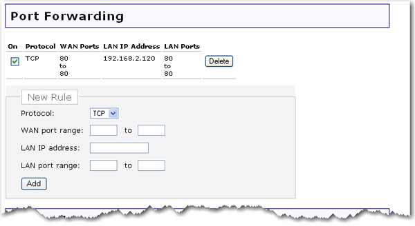 For detailed steps on configuring your own Port Forwarding rules, see the Tutorials page.