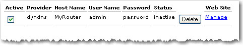 To remove a dynamic DNS assignment, click the Delete button next to the DNS assignment.
