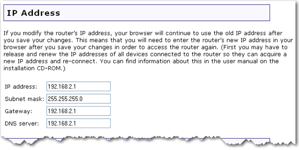 Note: The default LAN IP address of the router is 192.168.2.1 and default Subnet Mask is 255.255.255.0.