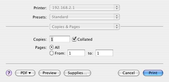 A USB printer can be connected to the router and used as a network printer if you are using an operating system that supports printing to an Internet Printing Protocol (IPP)-based printer. Macintosh OS X 10.3 and later has built-in support for this function.