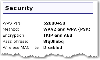 This section displays the current wireless security settings for your router.