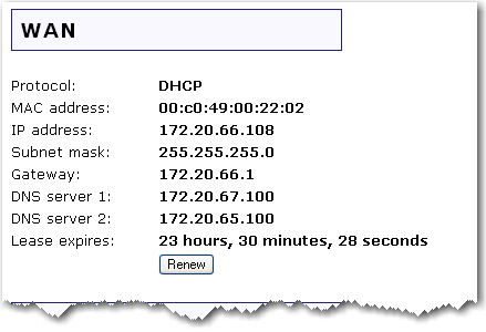 Note: If you press the Renew button and you fail to get a WAN IP address, see Troubleshooting for information on how to troubleshoot your connection.