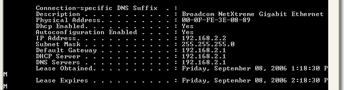 Type winipconfig /all and press ENTER.