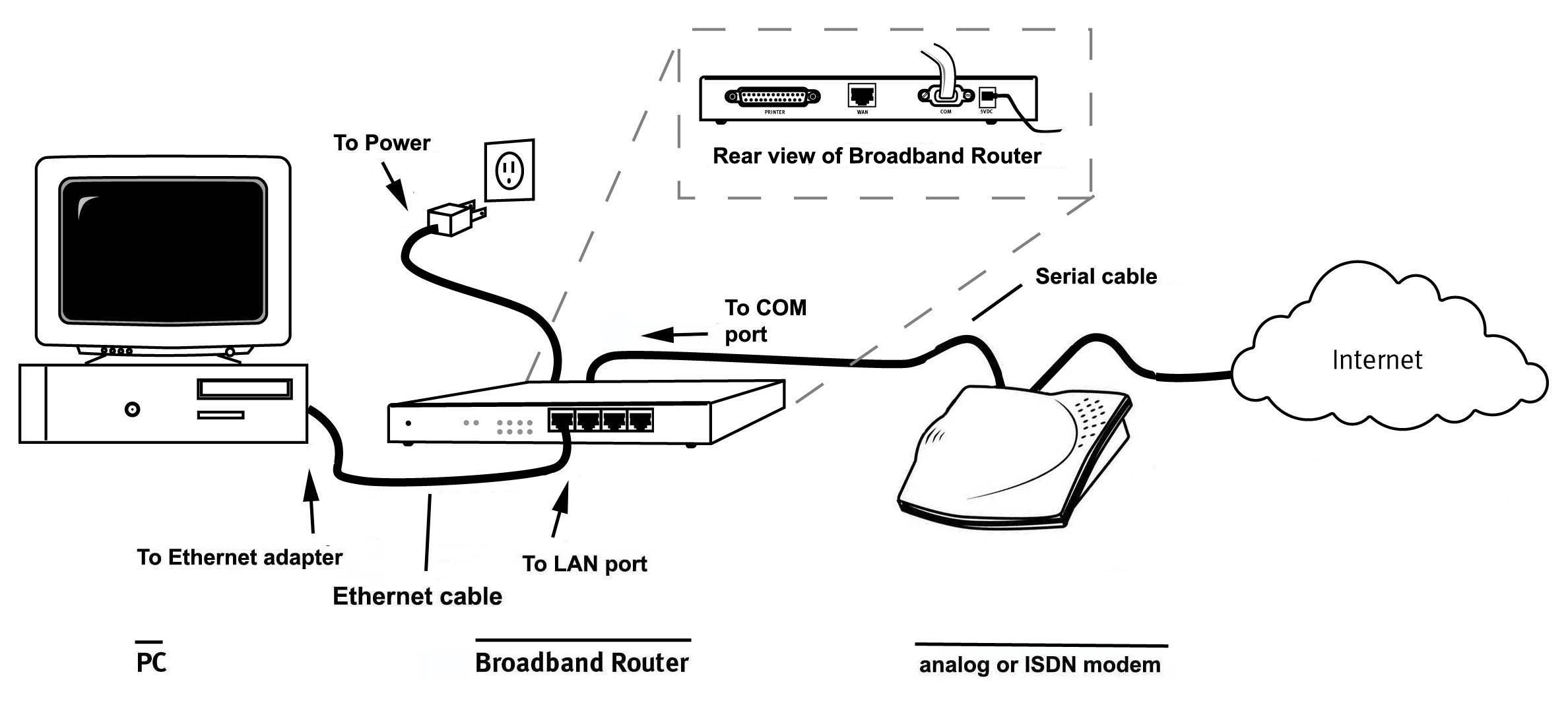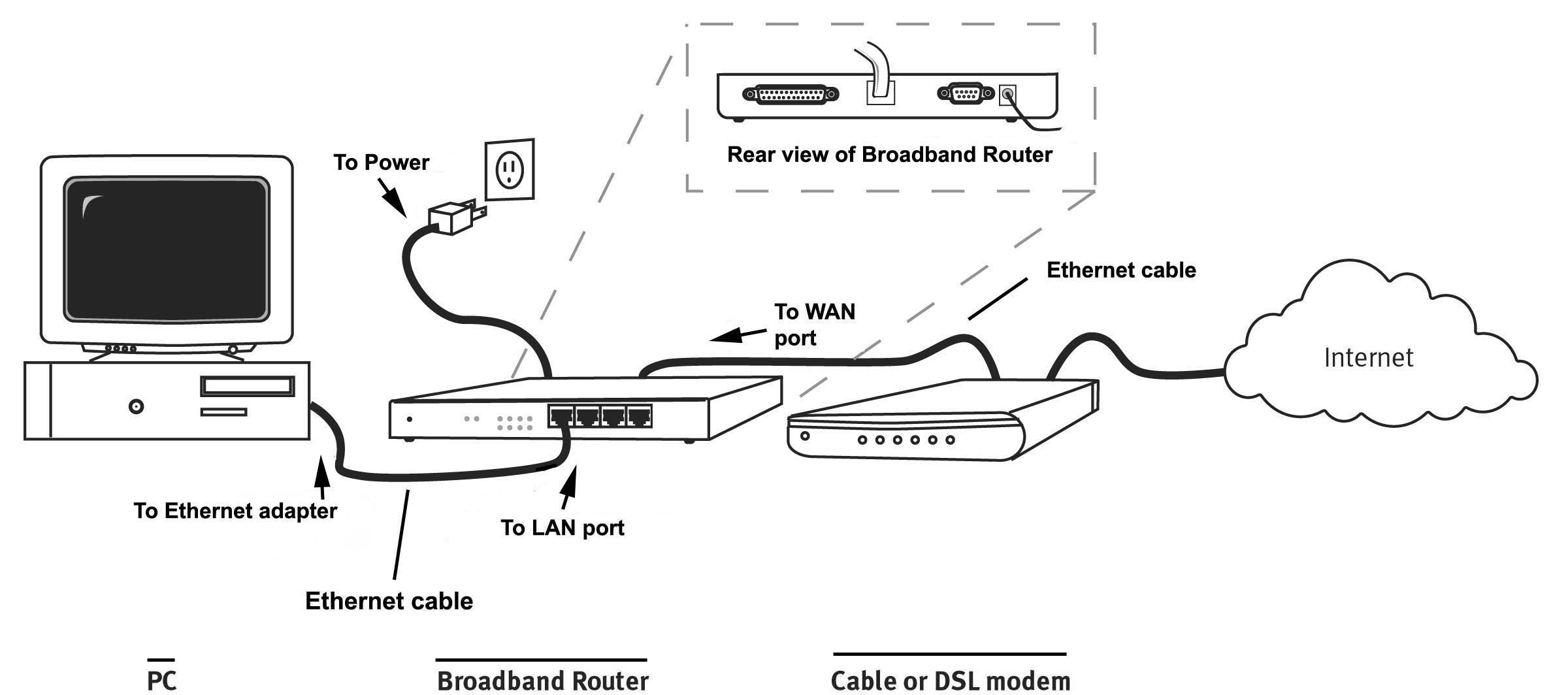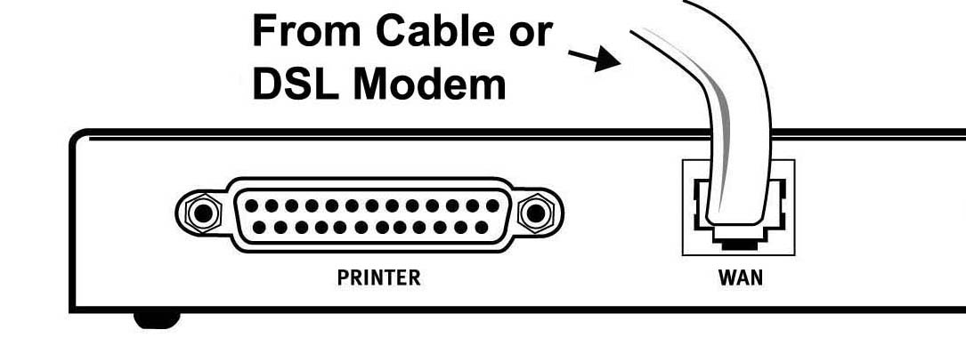 Ethernet cable to the WAN port on the rear of the Broadband Router.