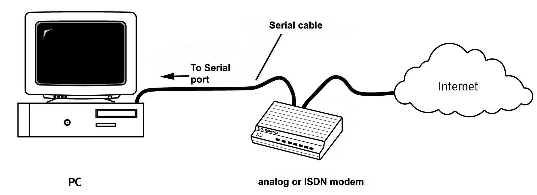 Connect a serial modem cable to your analogue or ISDN modem and to