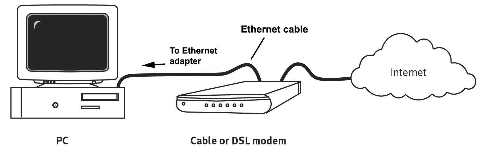 - Connect one end of an Ethernet cable to your PCs Ethernet adapter.