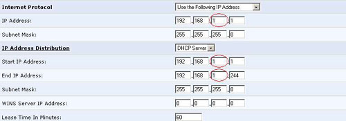 values in the IP Address field and in the Subnet Mask field. The default