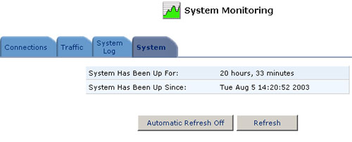 SystemClick the System button to display the amount of time that has passed since the system was last started.