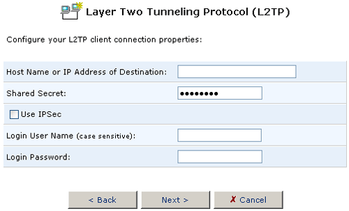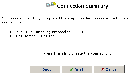 Layer Two Tunneling Protocol Connection To create a Layer Two Tunneling Protocol connection, perform the following steps: