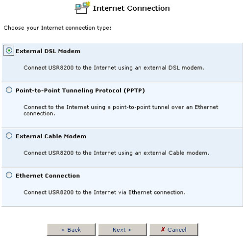 Enter the appropriate information for your Internet Connection and follow the on-screen instructions. When you are finished, you should have a secure connection to the Internet.