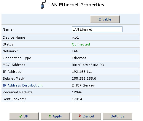 When you are finished modifying any of the settings, click Apply and then click OK. LAN Ethernet ConnectionClick LAN Ethernet to view the information for your LAN connection.