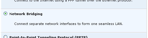 Creating a Network Bridging Connection A Network Bridge enables you to connect network segments. It offers increased flexibility by allowing a mixture of media types and by automating the difficult configurations that are normally associated with mixed media networks. The Network Bridge creates a software connection linking different types of network connections and creating a single subnet for the entire network. To create a Network Bridging connection, perform the following steps: