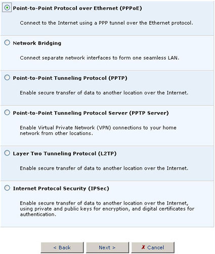 Creating Advanced ConnectionsThis section is intended for the advanced user and assumes intermediate computer networking proficiency. Creating a Point-to-Point Protocol over Ethernet (PPPoE) Connection Creating a Network Bridge Connection