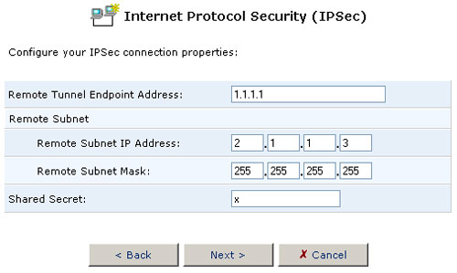 Creating a Virtual Private Network (VPN) ConnectionA Virtual Private Network (VPN) allows the home or SOHO user to establish a secure and cost-effective communications path over the Internet, linking a local network to a remote computer or site. Widely used VPN technologies such as IPSec and PPTP allow users to safely and securely access a company intranet from a remote location or connect to the home/SOHO network when traveling. The USR8200 Firewall/VPN/NAS's three modules, IPSec, PPTP Server, and PPTP Client, enable computers on the local network to communicate over VPN connections with remote computers without needing to run any additional VPN software. Pass-through support allows computers on the local network to establish direct VPN connections with remote servers passing through the gateways Firewall and NAT. There are four types of VPN connections you can create: Point-to-Point Tunneling Protocol, Point-to-Point Tunneling Protocol Server (PPTP Server), Layer Two Tunneling Protocol (L2TP), and Internet Protocol Security (IPSec). Layer Two Tunneling Protocol Connection