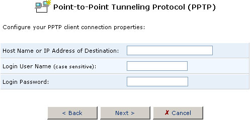 Creating a PPTP Server Connection To create a PPTP server connection, perform the following steps:
