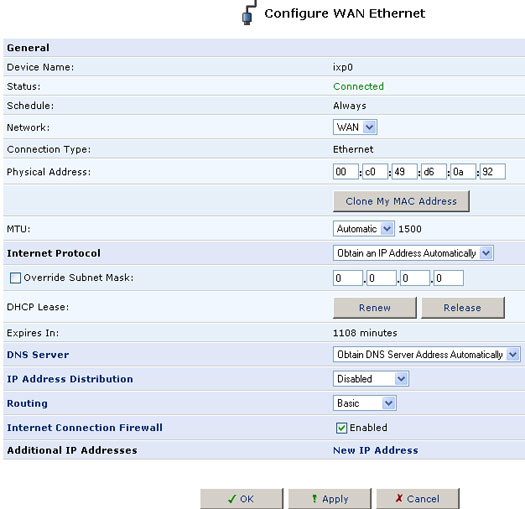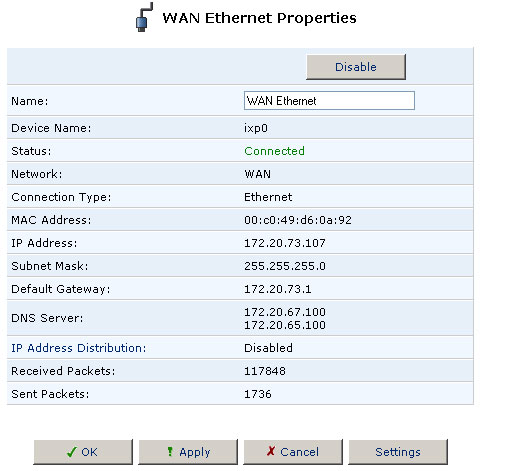 WAN Ethernet ConnectionClick WAN Ethernet to view the information for your WAN connection.