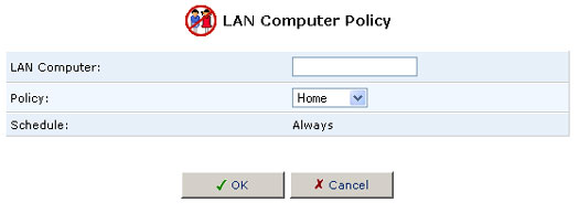 The Add LAN Computer screen will appear. 2. Type in the name or IP of the LAN computer you to which you wish to apply a policy.