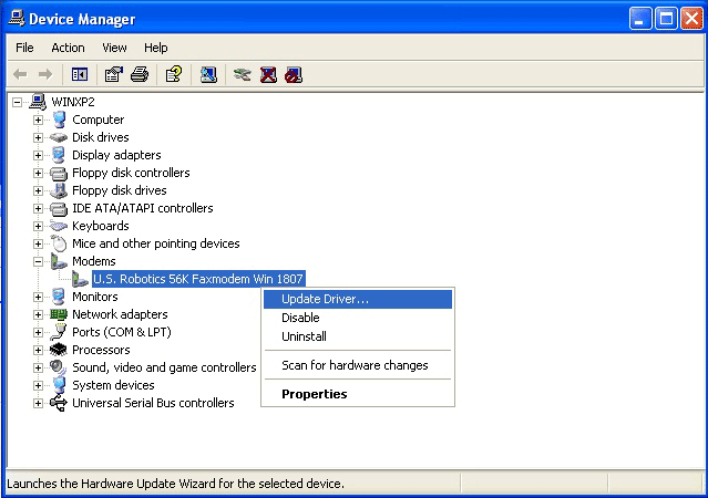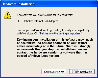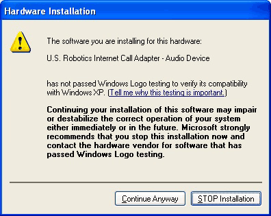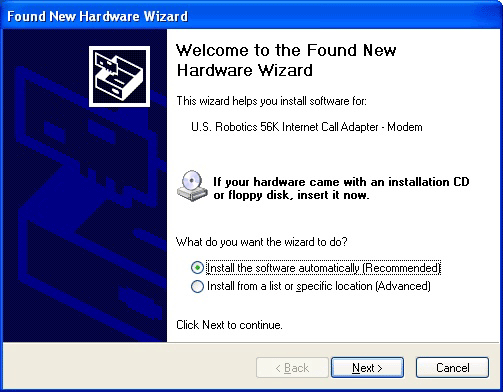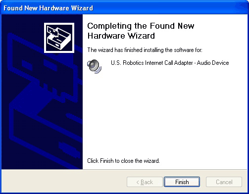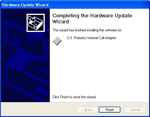 USRobotics Internet Call Modem in Windows XPNote: These instructions are for Windows XP only.1. This modem has built-in support in Windows XP. Once physically installed, the modem will be installed as a standard Data/Fax modem. Follow these steps to add the latest driver for voice functionality.