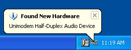 22. The last device will now be detected and will automatically be installed by Windows. This device is the Unimodem Half-Duplex Audio Device.