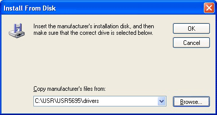 6. Click on Browse to point to C:\USR\USR5695\DRIVERS.